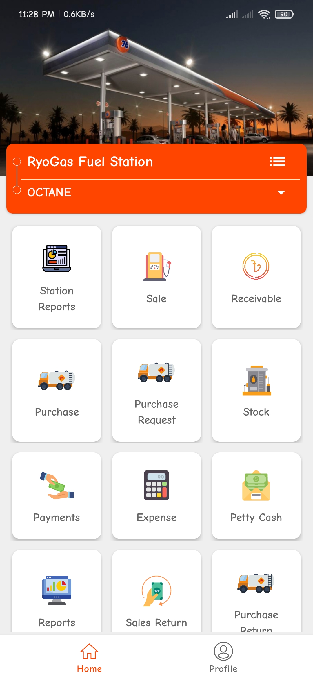 The management app tracks sales, purchase, stock, petty cash, sales receipts and accounting for stations. Play Store